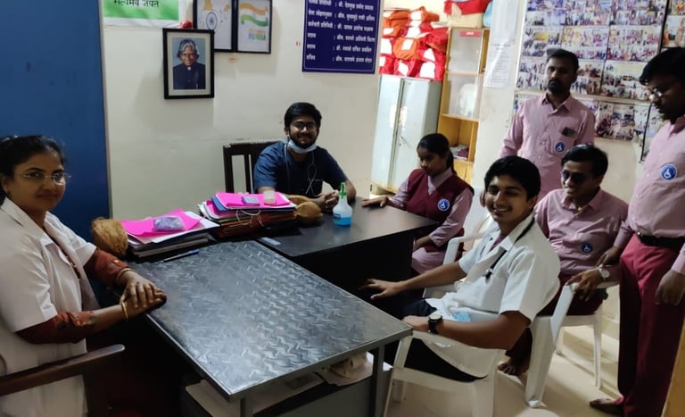 Description: जागतिक महिला दिनानिमित्त नवजीवन अंध अपंग प्रशिक्षण केंद्र येवलेवाडी येथील शिक्षकांची व विद्यार्थ्यांची आरोग्य तपासणी .